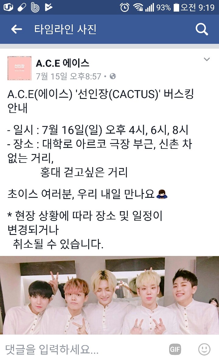7월 16일 일요일 버스킹 공지 작성자샌디|작성시간17.07.16|조회수113 목록 댓글 1 글자크기 작게가 글자크기 크게가 버스킹 볼수 있는 기회랍니다 다음검색 현재 게시글 추가 기능 열기 북마크 공유하기 신고 센터로 신고 댓글 댓글 1 댓글쓰기 답글쓰기 댓글 리스트 작성자맛동산 | 작성시간 17.09.29 ㅠㅠ 나 페북 안한다고..얘드라 다음카페 해죠... 댓글 전체보기