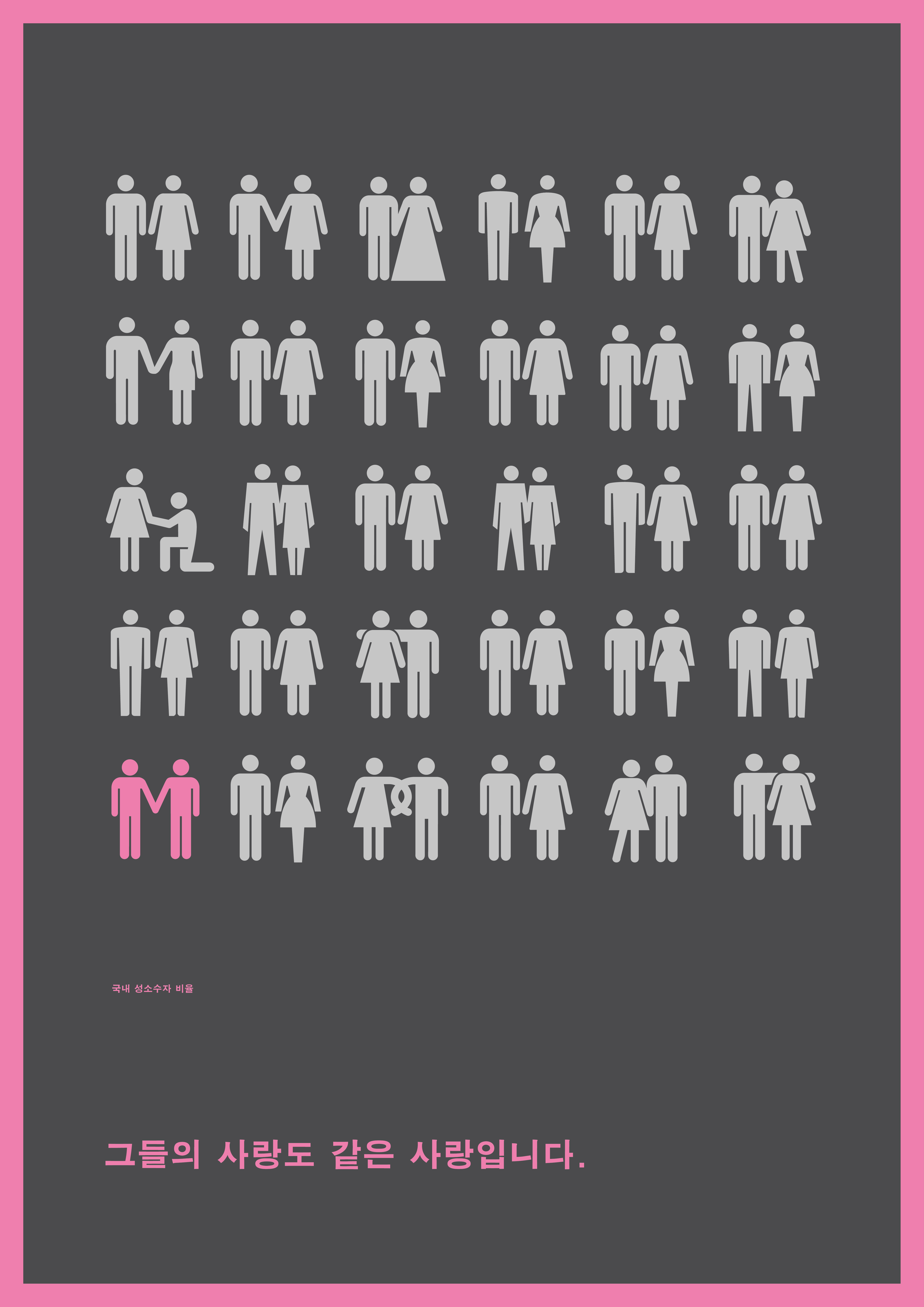 = 픽토그램 디자이너 함영훈 작가의 작품을 많이 참고하여, 남녀 커플의 픽토그램을 많이 만들어 보았습니다. 보편적이고 평범한 남녀의 사랑에 비해, 다르다는 이유로 심한 차별과 소외를 받는 성소수자들의 사랑에 대해 말해보고 싶었습니다.