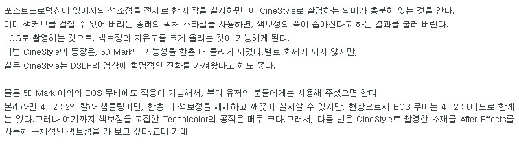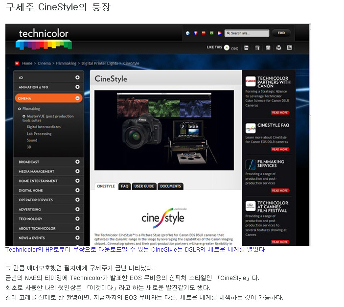 (펌) CineStyle 캐논 DSLR 픽쳐 스타일 (파일첨부) 작성자김경수|작성시간11.06.30|조회수886 목록 댓글 1 글자크기 작게가 글자크기 크게가 http://www.technicolor.com/en/hi/cinema/filmmaking/digital-printer-lights/cinestyle Technicolor_CineStyle_Guides_06-022011branded.pdf technicolor_cinestyle_v1.0.zip 첨부파일첨부된 파일이 7개 있습니다. jpg 파일 1.jpg 다운로드 jpg 파일 2.jpg 다운로드 jpg 파일 3.jpg 다운로드 jpg 파일 4.jpg 다운로드 jpg 파일 5.jpg 다운로드 pdf 파일 Technicolor_CineStyle_Guides_06-022011branded.pdf 다운로드 zip 파일 technicolor_cinestyle_v1.0.zip 다운로드 다음검색 현재 게시글 추가 기능 열기 북마크 공유하기 신고 센터로 신고 댓글 댓글 1 댓글쓰기 답글쓰기 댓글 리스트 작성자히데 | 작성시간 11.07.01 좋은 녀석이군요.. 물론 스튜디오나 실내에서는 쪼매 애매할수도 있겠지만 개인 사용자 들에게는 좋은 플러그인 정도가 되겠네요 ^^* ㅋ 댓글 전체보기