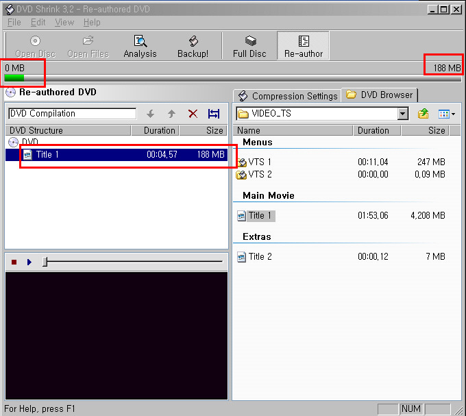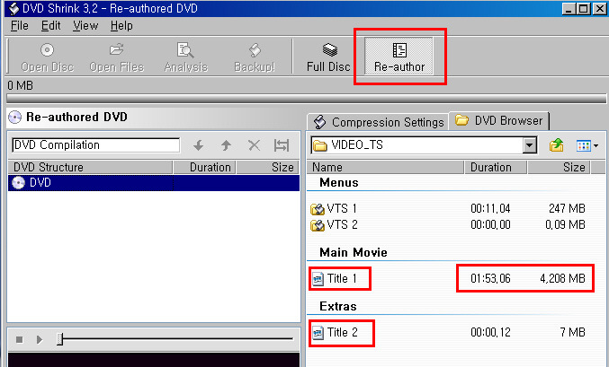 4. Re-Author를 누르면 아래와 같이 정보가 나옵니다. 오른쪽에 DVD Browser탭 선택.