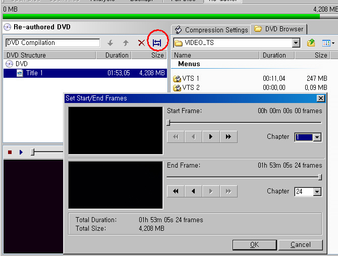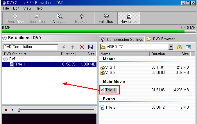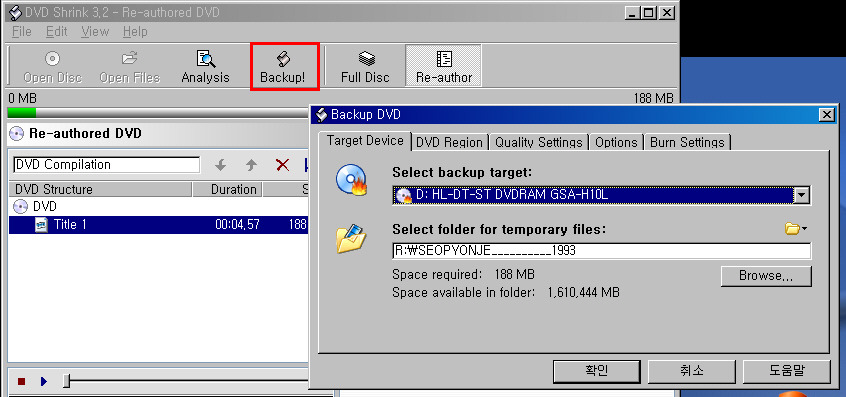 DVD Shrink 3.2 를 이용하여 DVD의 구간을 지정후 새로 DVD이미지 만들기