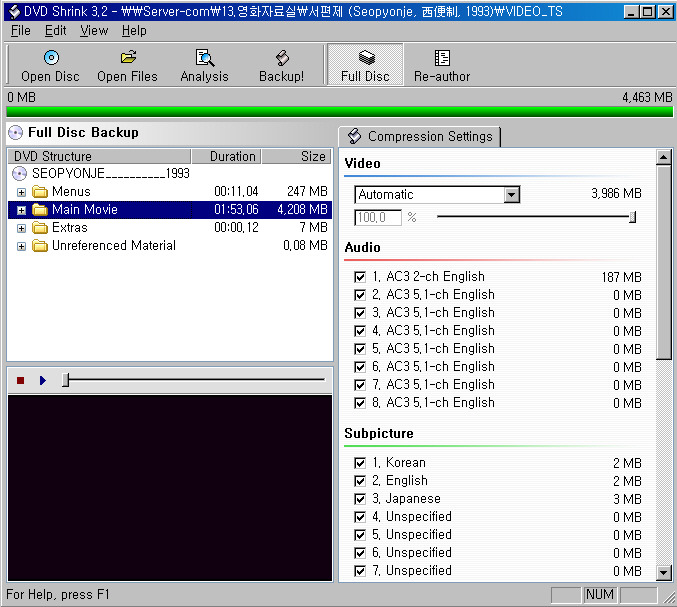 살펴보시면 Main Movie에 Title1이 있습니다. 이것이 DVD의 본편영상입니다. 용량이 4기가로 나오죠.