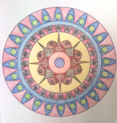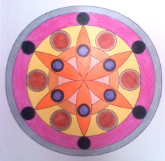 이렇게 색칠한 만다라는 치유 효과가 있다고 해요.(자신에게 필요한 에너지가 담긴 색을 모르는 사이에 골라 쓰게 된답니다.)