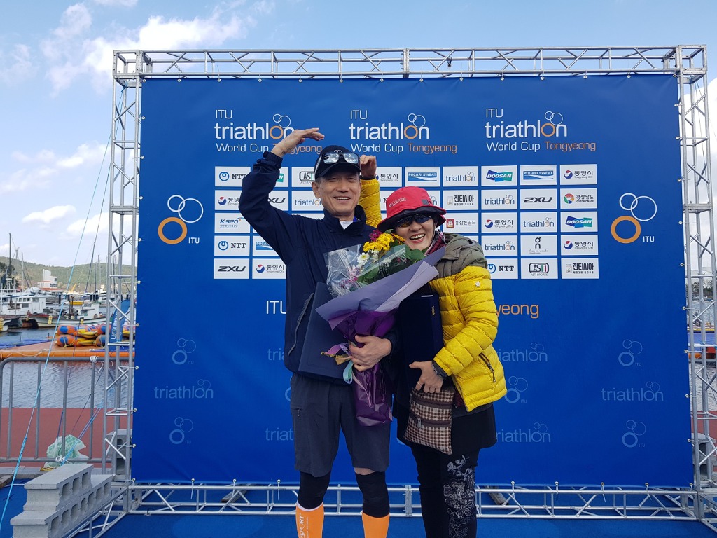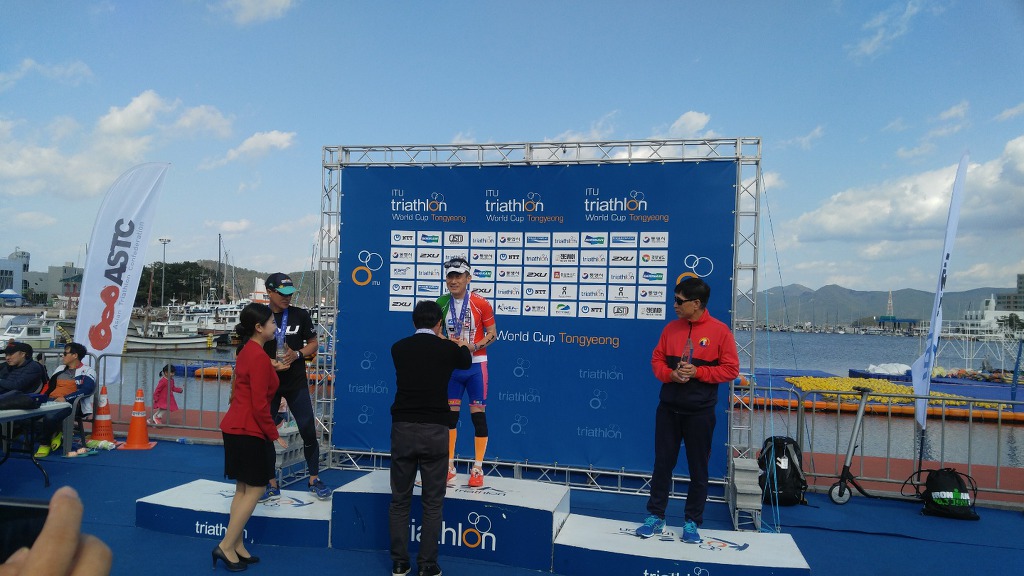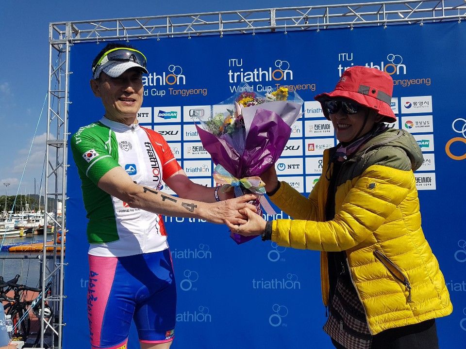 2주 전 안양철인에 가입하여 이번 통영대회에서 올림픽코스를 완주한 배석호 회원,