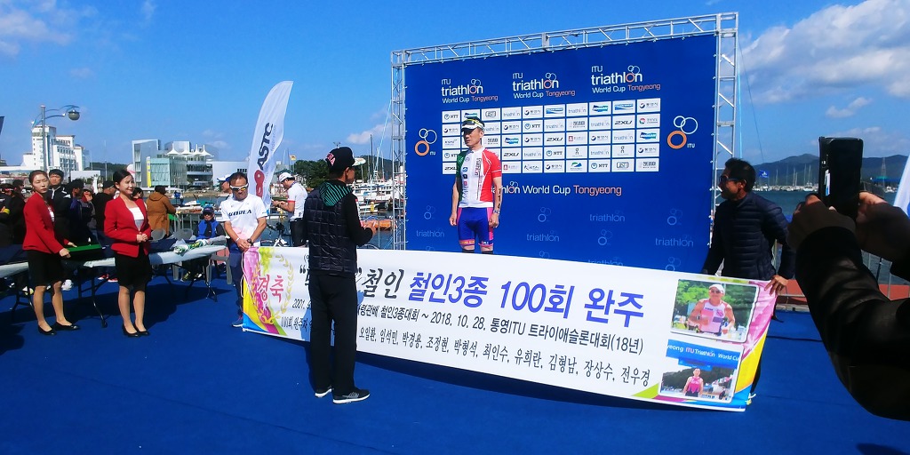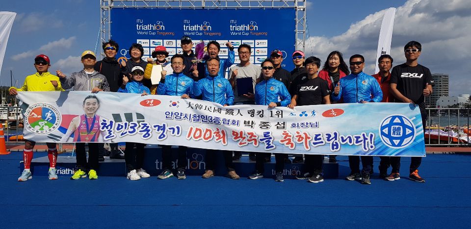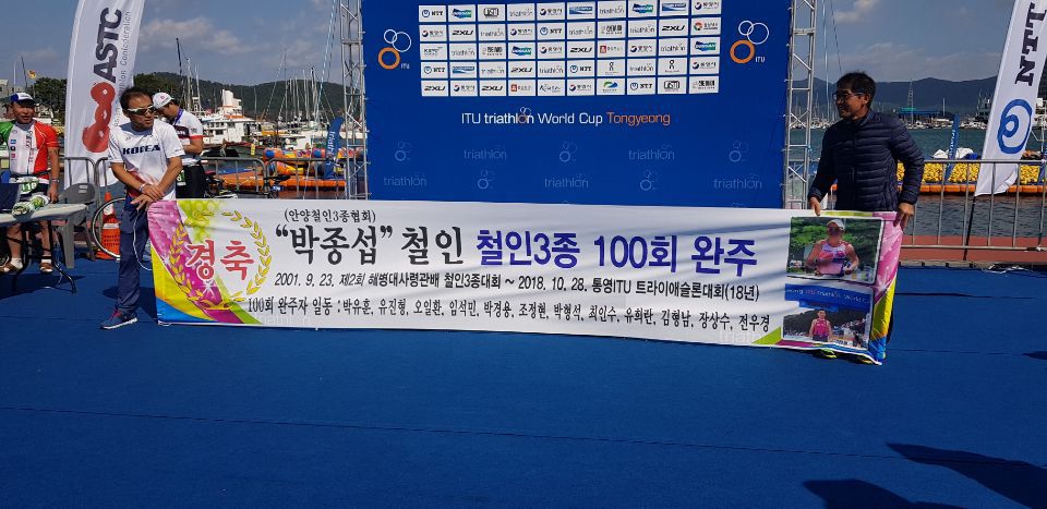 철인3종경기 100회 완주 대한민국 13호의 금자탑을 세우신 회장님께 축하와 함께 앞으로도 건강하게 오래도록 후배들과 즐겁게 운동하실 수 있기를 기원하며 항상 응원하겠습니다