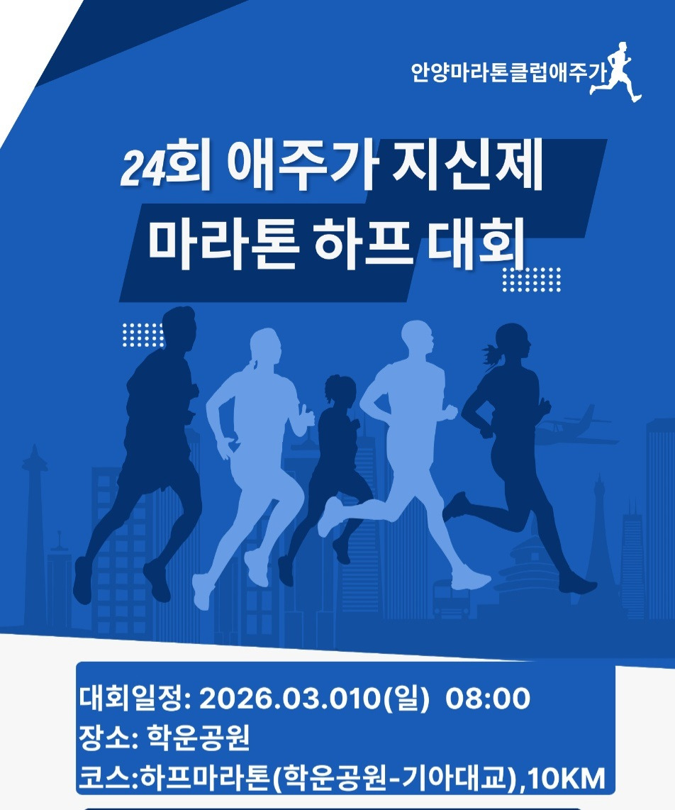 3/1(일) '愛走家 地神祭' 마라톤 대회 작성자이정남|작성시간26.03.03|조회수97 목록 댓글 1 글자크기 작게가 글자크기 크게가 3월 1일(일) 평촌 학운공원에서 열린 안양마라톤클럽 '愛走家'의 연례 행사인 '地神祭'에 많은 회원과 가족들이 함께 했습니다. 올 한 해도 '지신제'의 좋은 기운으로 안전하게 즐기시기 바랍니다. 다음검색 현재 게시글 추가 기능 열기 북마크 공유하기 신고 센터로 신고 댓글 댓글 1 댓글쓰기 댓글 리스트 작성자방은주 | 작성시간 26.03.05 아 사진보니 또 재밌네요 베스트사진 네명서 뛰는거 ~~ 넘 멋찌네요 댓글 전체보기
