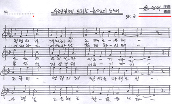 백서에는 윤민석 곡의 사용 용도 등과 함께 자필악보가 수록돼 있다.