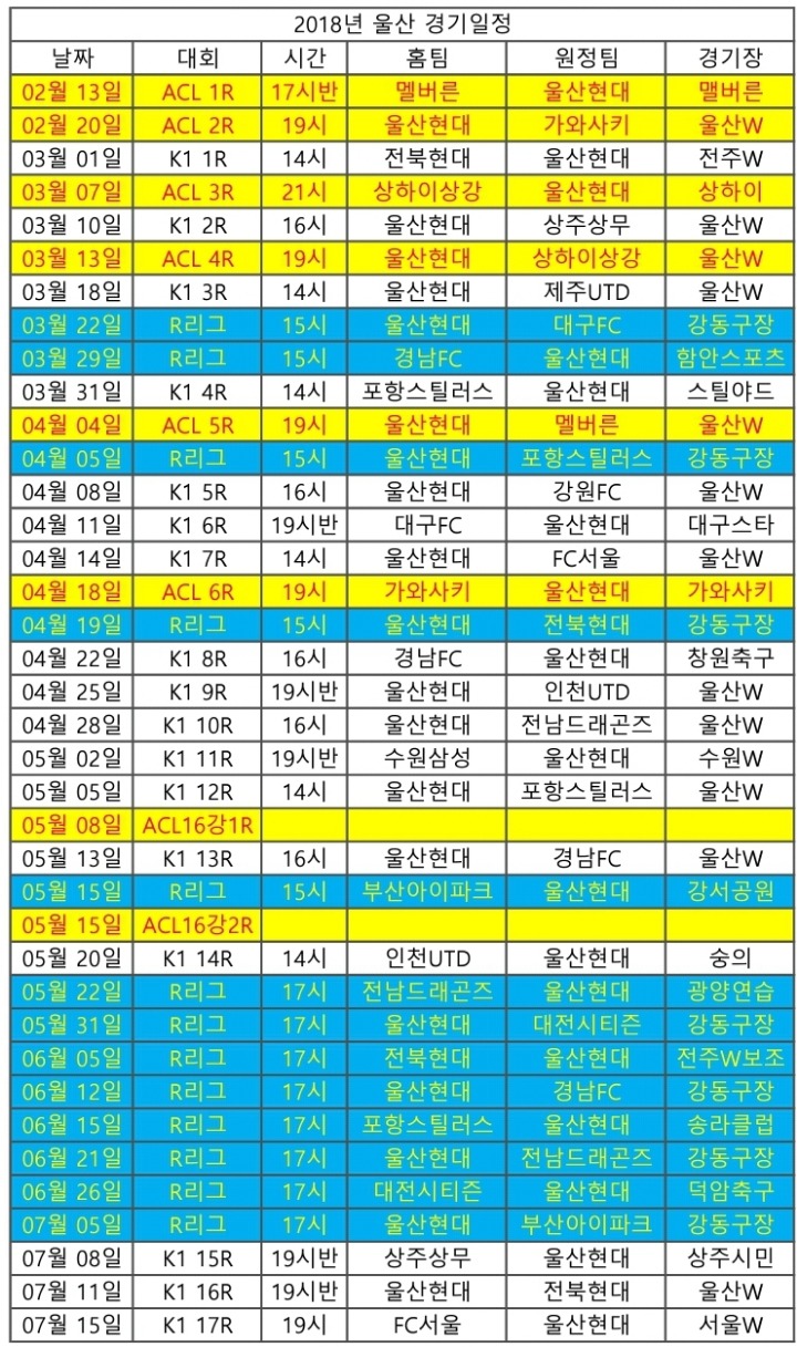 노란바탕 빨간글씨 ACL 결승일정까지 걍 다 포함