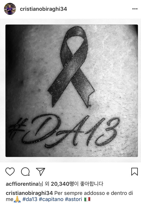 팀 캡틴 아스토리 선수를 추모하기 위해 #DA13 이라는 타투 이니셜을 새겼는데,