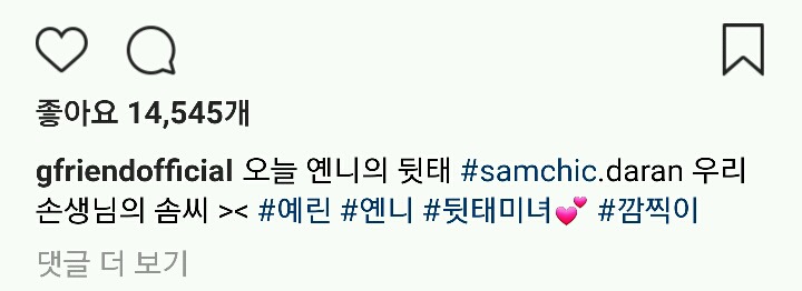 [아이돌]180809 여자친구 인스타그램 Feat.옌스타그램 작성자GFRIEND은하|작성시간18.08.09|조회수294 목록 댓글 4 글자크기 작게가 글자크기 크게가 #뒷태미녀 #옌니 #팝틴 공연 #오사카 다음검색 현재 게시글 추가 기능 열기 북마크 공유하기 신고 센터로 신고 댓글 댓글 4 댓글쓰기 답글쓰기 댓글 리스트 작성자제테르손 | 작성시간 18.08.09 예린 작성자짜냥 | 작성시간 18.08.09 양갈래 ㄱㅇㅇ 작성자풍바라기 | 작성시간 18.08.09 ㄱㅇㅇ 작성자하얀눈꽃송이 | 작성시간 18.08.09 정예린~♡ 댓글 전체보기