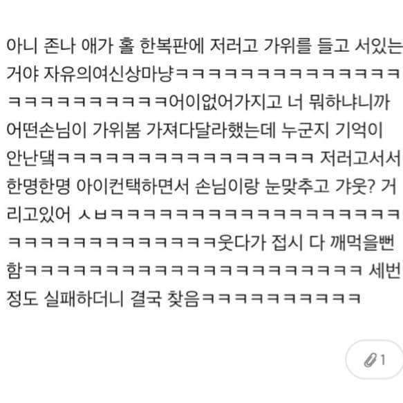 [유머]알바생 1명이 새로 들어왔는데 작성자Suzy|작성시간18.09.06|조회수2,288 목록 댓글 7 글자크기 작게가 글자크기 크게가 ㅊㅊ 네이버 카페 다음검색 현재 게시글 추가 기능 열기 북마크 공유하기 신고 센터로 신고 댓글 댓글 7 댓글쓰기 답글쓰기 댓글 리스트 작성자첼시&사우샘프턴 | 작성시간 18.09.06 ㅋㅋㅋㅋ귀엽 작성자Cesar Azpilicueta Tanco | 작성시간 18.09.06 꾸엽ㅠㅠ 작성자JTBC | 작성시간 18.09.06 가위의 여신상이네 ㅋㅋㅋㅋ 작성자코코소리 | 작성시간 18.09.06 커여워 작성자구덕운동장 | 작성시간 18.09.06 ㅋㅋㄲㅋㅋㅋㅋㄲㅋㅋㅋ개웃기네 댓글 전체보기