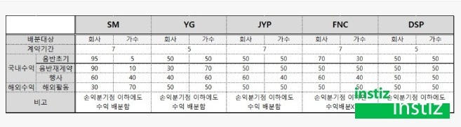 많은이들이 착각하는 소속사별 회사대 가수 수익배분 요점(SM. YG. JYP, FNC, DSP)