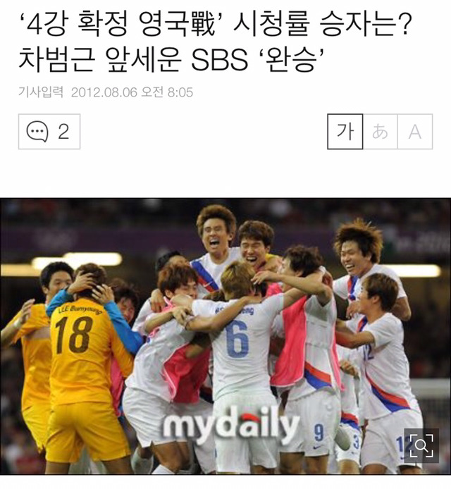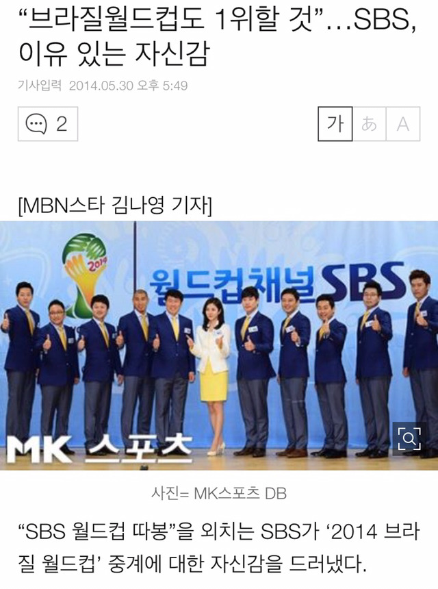 런던올림픽도 그렇고 각종 평가전에서도 SBS가 1위였고 브라질월드컵 이전에도 압도적으로 SBS가 1위할거란 예측이었는데