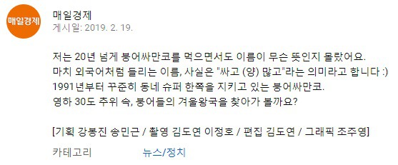 붕어싸만코 이름 뜻.jpg 작성자네마냐 마티치|작성시간19.02.20|조회수22,994 목록 댓글 11 글자크기 작게가 글자크기 크게가 다음검색 현재 게시글 추가 기능 열기 북마크 공유하기 신고 센터로 신고 댓글 댓글 11 댓글쓰기 답글쓰기 댓글 리스트 작성자갓지효 | 작성시간 19.02.20 싸고 양많다 ㅋㅋㅋㅋ 작성자에스토펠 | 작성시간 19.02.20 ㅋㅋㅋㅋ 무슨 포르투갈어 쯤 되는줄... 작성자풍바라기 | 작성시간 19.02.20 ㄷㄷㄷ 작성자Spurs | 작성시간 19.02.20 싸고 많은지는 모르겠지만 졸맛탱 작성자칼하트. | 작성시간 19.02.21 붕어싸만코 초코맛있었는데 존맛이었는데 어느순간부터 안보임 댓글 전체보기