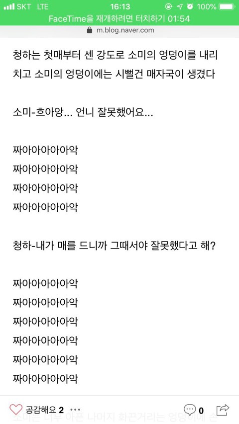 청하 "전소미, 너 당장 바지랑 팬티 벗고 엎드려!!!!" 작성자나호로|작성시간19.03.02|조회수6,698 목록 댓글 15 글자크기 작게가 글자크기 크게가 이걸 본 전소미 인스타 다음검색 현재 게시글 추가 기능 열기 북마크 공유하기 신고 센터로 신고 댓글 댓글 15 댓글쓰기 답글쓰기 댓글 리스트 작성자마르시알 | 작성시간 19.03.02 ㄷㄷ 작성자개살구 | 작성시간 19.03.02 ?? 작성자Take Your Time | 작성시간 19.03.02 저런 거 보지마ㅠㅠ 작성자Pep Guardiola | 작성시간 19.03.02 ... 작성자아스날 | 작성시간 19.03.03 아닠ㅋㅋㅋ 팬픽을 봤넼ㅋㅋㅋㅋㅋㅋㅋㅋㅋㅋ 댓글 전체보기