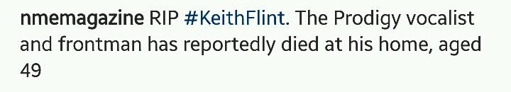 The Prodigy 보컬 키스 플린트 사망 작성자락싸인 음잘알 만들기 프로젝트|작성시간19.03.04|조회수789 목록 댓글 7 글자크기 작게가 글자크기 크게가 좋아하던 곡이 많던 그룹이였는데...고인의 명복을 빕니다. 다음검색 현재 게시글 추가 기능 열기 북마크 공유하기 신고 센터로 신고 댓글 댓글 7 댓글쓰기 답글쓰기 댓글 리스트 작성자Layvin Kurzawa | 작성시간 19.03.04 헐 프로디지 작성자영원한 캡틴박 | 작성시간 19.03.04 고인의 명복을 빕니다 작성자우리풍 | 작성시간 19.03.04 미친.... 내 중고딩시절을 함께한..... R.I.P 작성자어이없는걸보면우는으악새 | 작성시간 19.03.04 이게 말이 됩니까... 작성자Jürgen Norbert Klopp | 작성시간 19.03.05 고인의 명복을 빕니다 댓글 전체보기