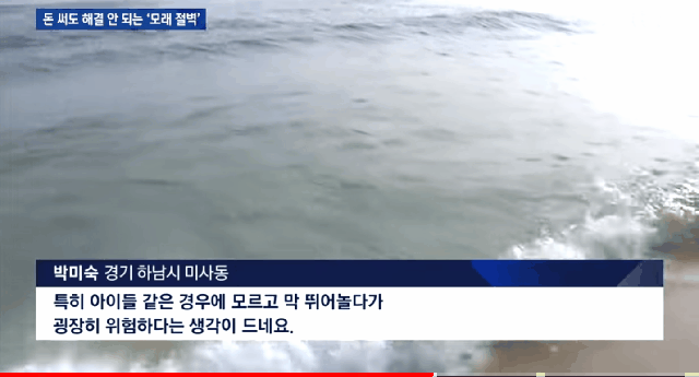 지자체에서 매변 수억-수십억을 들여 모래를 채워 넣거나 모래 유실을 막기위해 물 속에 방파제를 설치하지만 효과가 전혀 없음