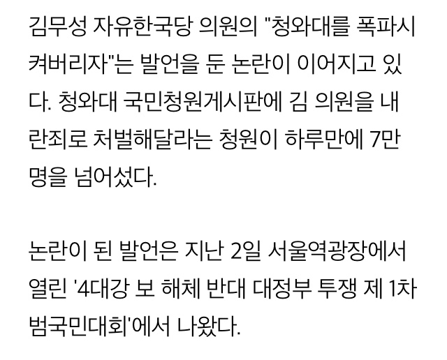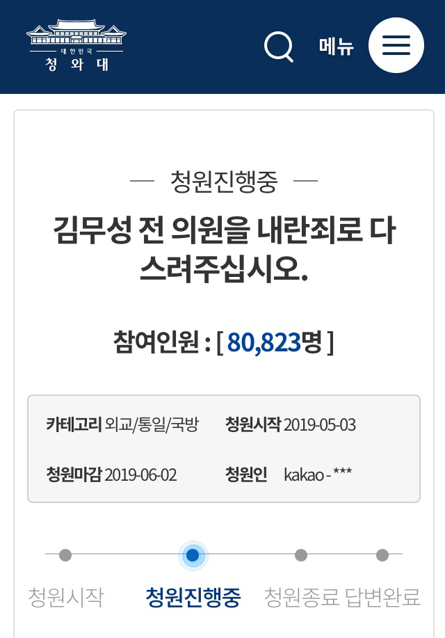 김무성 전 의원을 내란죄로 다스려주십시오. > 대한민국 청와대나라를 나라답게, 국민과 함께 갑니다.www1.president.go.kr