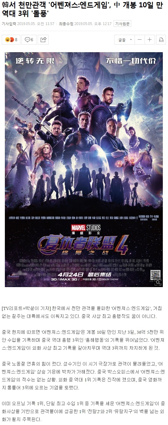 개봉 10일만에 역대 흥행 3위까지 찍음 ㄷㄷㄷ