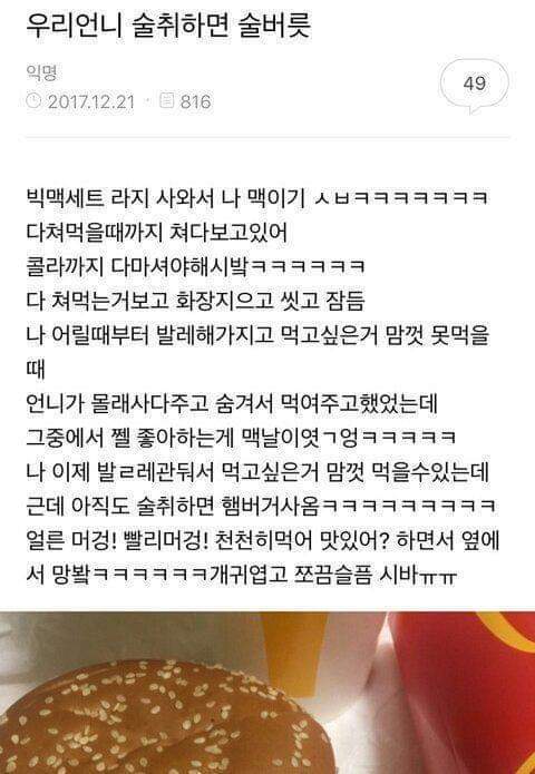 친언니의 술버릇 작성자방탄소년단 지민|작성시간19.05.18|조회수3,703 목록 댓글 11 글자크기 작게가 글자크기 크게가 웃긴데 슬픔 ㅠㅠㅠㅠㅠㅠ 다음검색 현재 게시글 추가 기능 열기 북마크 공유하기 신고 센터로 신고 댓글 댓글 11 댓글쓰기 답글쓰기 댓글 리스트 작성자BBC 오피셜 | 작성시간 19.05.18 나도 저런 누나 있었으면 ㅠㅠ 작성자팩트폭행금지법 | 작성시간 19.05.18 우리 형 새끼는 술을 안머금 ㅠㅠ 작성자유르키리아무드 | 작성시간 19.05.18 우리 형새끼는 술먹고오면 꼭 내방에 토하고 지 방가서 자는데 ㅂㄷㅂㄷ 답댓글 작성자까까오톡 | 작성시간 19.05.18 아니 왜 ㅜㅜ ㅋㅋㅋㅋㅋㅋㅋ 작성자메르데카 | 작성시간 19.05.18 ㅋㅋ 댓글 전체보기