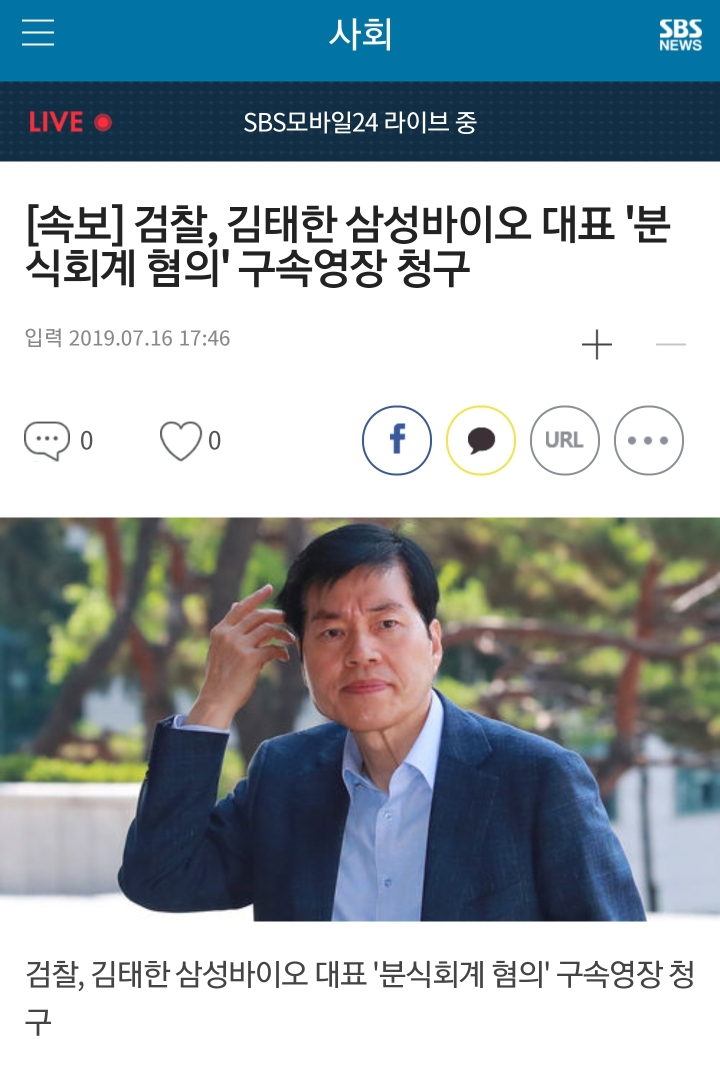 [기사][속보] 검찰, 김태한 삼성바이오 대표 '분식회계 혐의' 구속영장 청구 작성자도람푸|작성시간19.07.16|조회수636 목록 댓글 6 글자크기 작게가 글자크기 크게가 https://mnews.sbs.co.kr/news/endPage.do?newsId=N1005354697&plink=COPYPASTE&cooper=WEBPUSH 다음검색 현재 게시글 추가 기능 열기 북마크 공유하기 신고 센터로 신고 댓글 댓글 6 댓글쓰기 답글쓰기 댓글 리스트 작성자민트색나이키 | 작성시간 19.07.16 점점 올라가는구나 작성자봄날은 온다 | 작성시간 19.07.16 굿굿 다음은 정현호다 작성자그라운드 위 壁 | 작성시간 19.07.16 재용도 수고많았으니 쉬게해줘야 작성자캬쿄큐 | 작성시간 19.07.16 삼성 댓글 알바분들 여기는 쉴드 못쳐서 안오시는거죠?? 작성자OverviewEffect | 작성시간 19.07.16 ㅋㅋ 댓글 전체보기