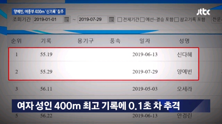 여자 중등부 400m 신기록 세운 양예빈