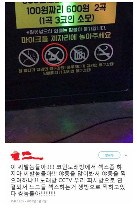 ??? : 코인노래방에서 ㅅㅅ좀 하지마.jpg 작성자Darth Vader|작성시간19.08.03|조회수7,659 목록 댓글 2 글자크기 작게가 글자크기 크게가 ㅡ 다음검색 현재 게시글 추가 기능 열기 북마크 공유하기 신고 센터로 신고 댓글 댓글 2 댓글쓰기 답글쓰기 댓글 리스트 작성자영어왕 | 작성시간 19.08.03 사람들 바로 밖에서 다보이는데 우예하지 작성자헌신적인악마 | 작성시간 19.08.03 제가 알바하던 피시방도 코인노래방이랑 연동되있음 각방에cctv상시녹화중인데 왜 그런짓을하는지.. 댓글 전체보기