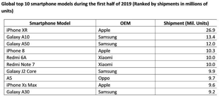 출처 : https://www.isthemessage.net/technology/top-10-best-selling-phones-in-the-first-half-of-2019/