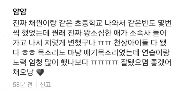 아이즈원 김채원(울림) 과거사진 작성자ひい_야임마뭐라고|작성시간19.09.24|조회수5,861 목록 댓글 13 글자크기 작게가 글자크기 크게가 프로듀스48 김채원(울림) 과거사진mimmimmim.tistory.com 울쌈무를 갖고 노냐!!! 다음검색 현재 게시글 추가 기능 열기 북마크 공유하기 신고 센터로 신고 댓글 댓글 13 댓글쓰기 답글쓰기 댓글 리스트 작성자필리포풍자기 | 작성시간 19.09.24 개 기욥다 ㅠㅠ 작성자허니섹시콤보 | 작성시간 19.09.24 살면서 유일하게 귀여웟던 시절... 작성자아이즈원 김민주 | 작성시간 19.09.24 무순 시절ㄷㄷ 이미지 확대 답댓글 작성자ひい_야임마뭐라고 작성자 본인 여부 작성자 | 작성시간 19.09.24 무순 와....잘컷네 작성자이강인 | 작성시간 19.09.24 개긔엽 댓글 전체보기