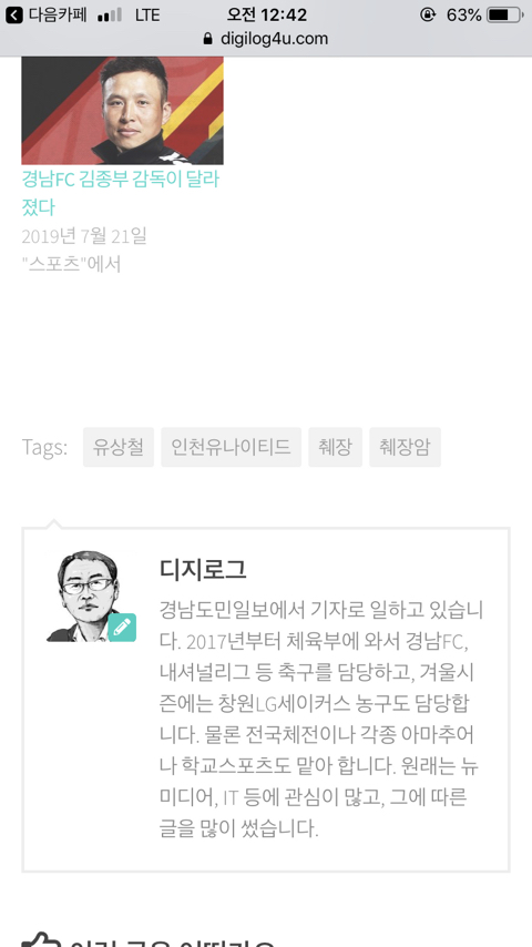 인천유나이티드 소식관련 기자블로그 글의 태그;; 작성자폴피어스|작성시간19.10.20|조회수5,944 목록 댓글 19 글자크기 작게가 글자크기 크게가 에휴.... 다음검색 현재 게시글 추가 기능 열기 북마크 공유하기 신고 센터로 신고 댓글 댓글 19 댓글쓰기 답글쓰기 댓글 리스트 작성자John Wick | 작성시간 19.10.20 기자들은 개인의 신상정보를 너무 쉽게 다룸 작성자Neymar! | 작성시간 19.10.20 문제 많으시네ㅡㅡ 작성자디발라(유벤투스) | 작성시간 19.10.20 이거 완전 미친사람 아닌가 작성자인천★위너 | 작성시간 19.10.20 최소한의 윤리의식도 없네 작성자Heidern | 작성시간 19.10.20 씨발새끼가 쳐돌았나 진짜 댓글 전체보기