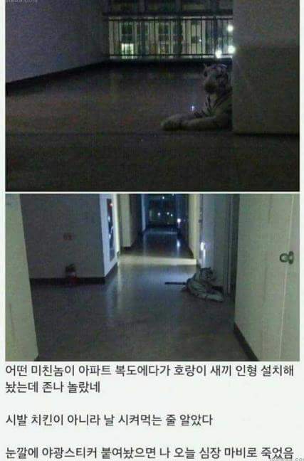 저런 호랑이인형 실제로 봤는데 대낮에 봐도 무서웠음 배달원 이해가감ㅋㅋ