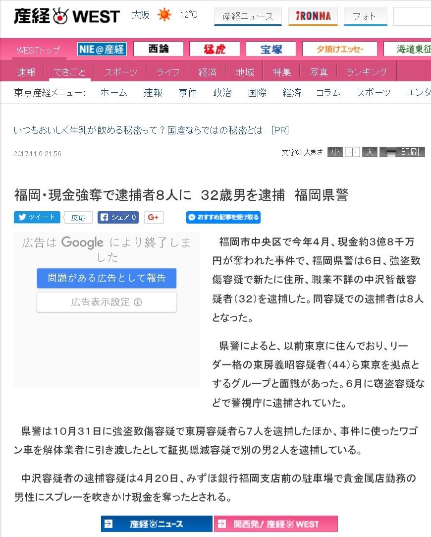 2017년 10월, 11월에 걸쳐 강도 사건의 진범 8명이 체포됐는데