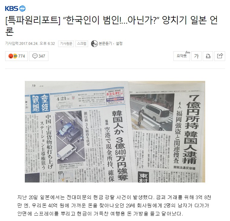 일본 언론들은 증거도 없는 상황에서 마치 한국인들이 강도 사건의 범인인 것처럼 보도를 했고,