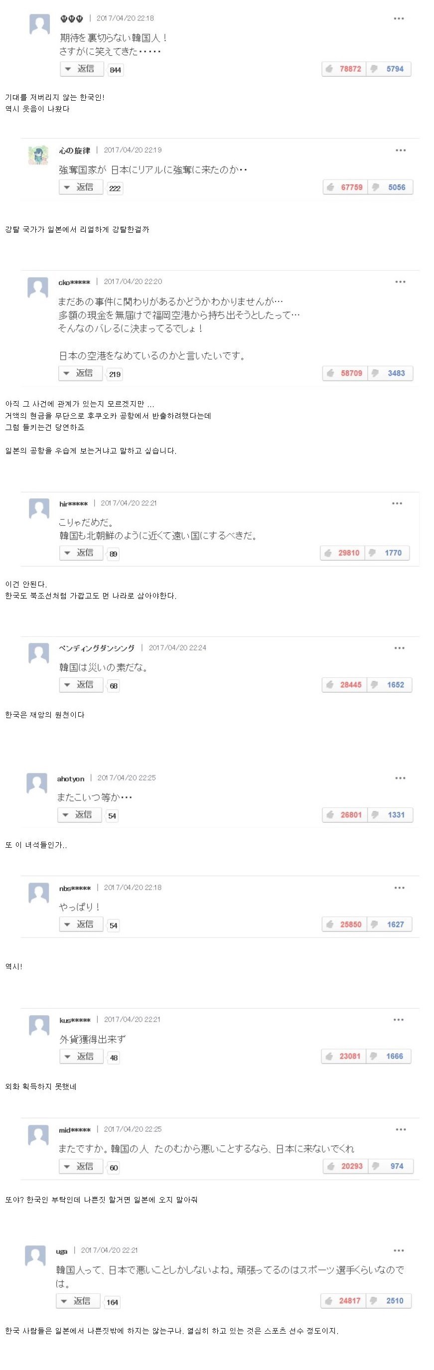 당시 야후재팬 댓글