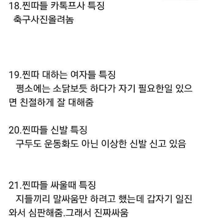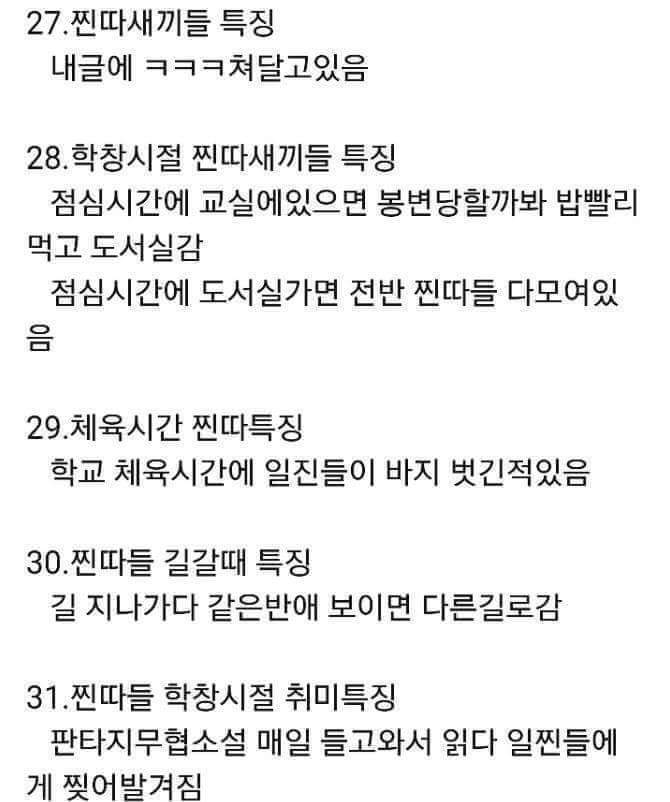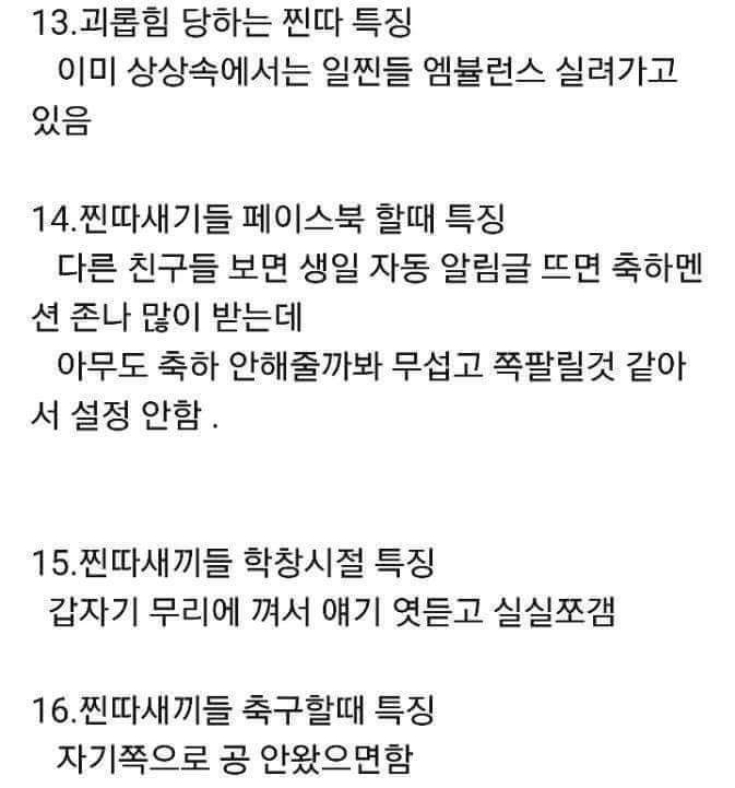 찐따들의 특징 작성자방탄소년단 지민|작성시간20.02.07|조회수5,827 목록 댓글 11 글자크기 작게가 글자크기 크게가 ㅋㅋㅋㅋㅋㅋㅋㅋ 다음검색 현재 게시글 추가 기능 열기 북마크 공유하기 신고 센터로 신고 댓글 댓글 11 댓글쓰기 답글쓰기 댓글 리스트 작성자패스 전문가 | 작성시간 20.02.07 질럿상 ㅋㅋㅋ 작성자Politano | 작성시간 20.02.07 항상 궁금한게 저 23번 사진은 진짜 박주영임? 답댓글 작성자오스트리아 | 작성시간 20.02.07 네 패션화보였을 걸요 작성자풍바라기 | 작성시간 20.02.07 작성자지그문트 프로이트 | 작성시간 20.02.07 나 학생때네 근데 찐따로 살아보니까 커서 양아치인거 보다 찐따 였던게 좋은거 같음 그시절 양아치짓 하는게 추억해보면 더 이불킥할 일임 댓글 전체보기