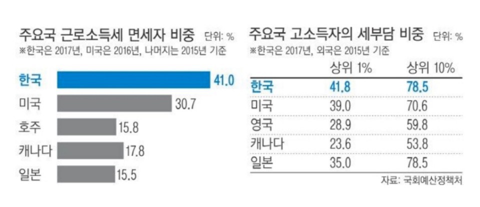 돌아와서, 꼭 근로소득 뿐만이 아니라 우리나라는 상위계층의 세금 부담율이 엄청난 국가중에 한 곳입니다.