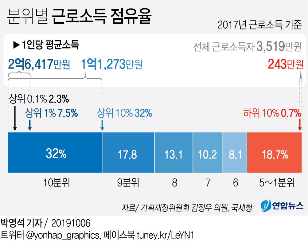 우리나라에서 근로소득세는 사실상 상위 30%가 전체의 95%를 담당하고 있습니다.