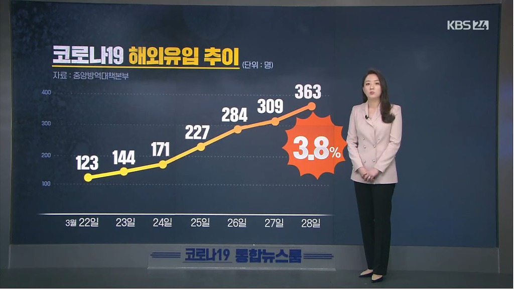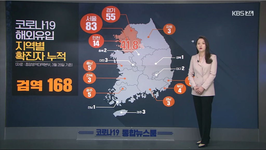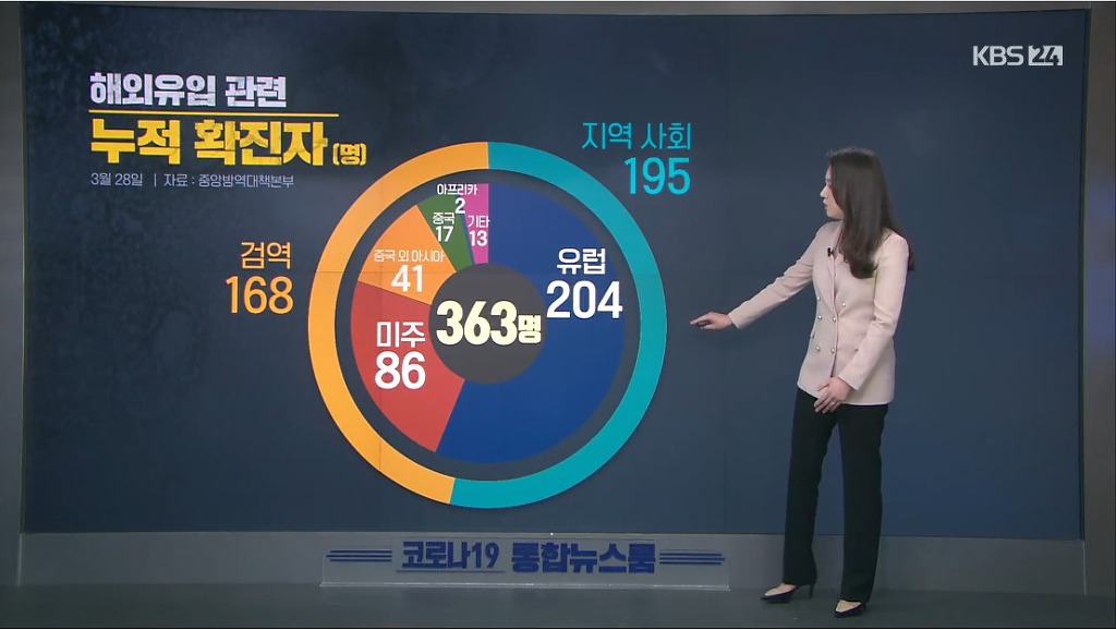 코로나19 해외 유입 확진자 추이 및 분류 차트 작성자Spooky|작성시간20.03.28|조회수1,136 목록 댓글 4 글자크기 작게가 글자크기 크게가 오늘자 신규확진자오늘자 신규확진자중 대구 제외시누적 지역별누적 국가별해외유입 추이해외유입 국가별, 확진경로별 다음검색 현재 게시글 추가 기능 열기 북마크 공유하기 신고 센터로 신고 댓글 댓글 4 댓글쓰기 답글쓰기 댓글 리스트 삭제된 댓글입니다. 답댓글 작성자하준정 | 작성시간 20.03.28 사실 질본 홈피가면 자세히 나와있는데 접근성이 떨어지니 ㅜ... 85% 이상이 일단 내국인입니다 답댓글 작성자Ron Swanson | 작성시간 20.03.28 외국인 몇되지도 않고 그마저도 국내거주하던 외국인이 대부분 작성자구르미 | 작성시간 20.03.28 이래도 해외를 막아야 하나? 댓글 전체보기