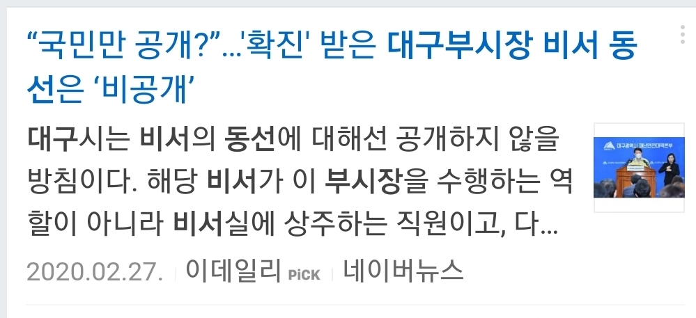 2월 말에 대구 부시장 비서 확진났던거...신천지 교육생인거 이제 밝혀짐