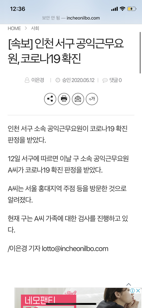 [기사][속보] 인천 서구 공익근무요원, 코로나19 확진