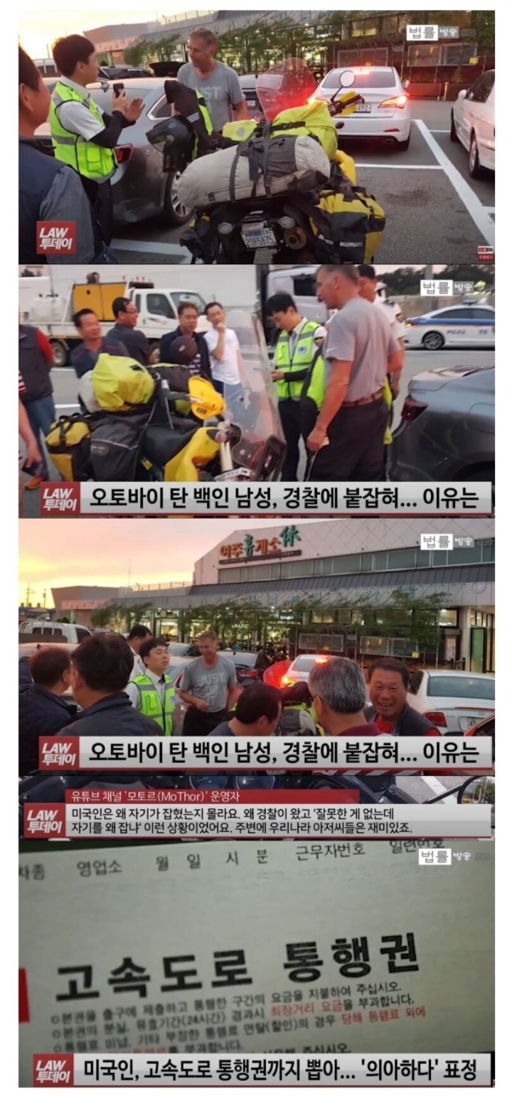 고속도로는 오토바이 못들어가는데 외국인이 모르고 들어가서 잡힘 ㅋㅋㅋ