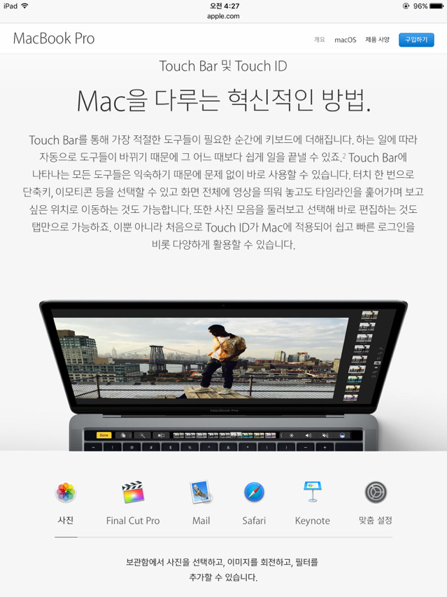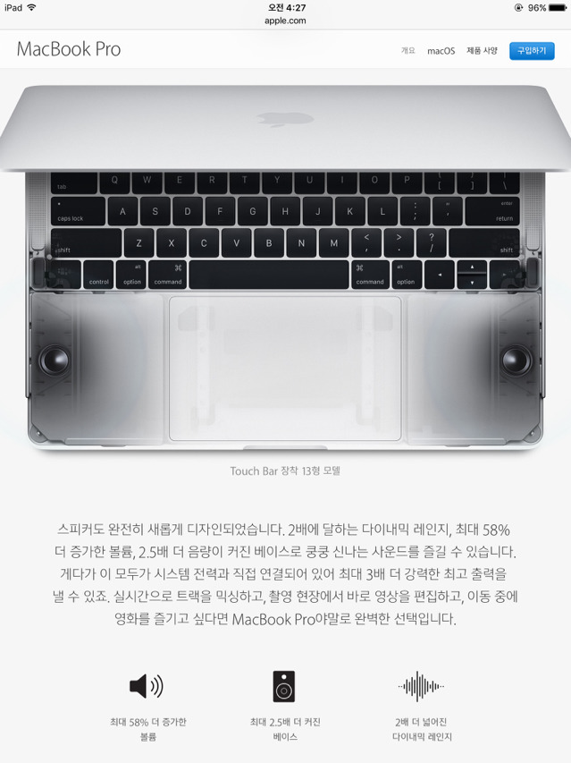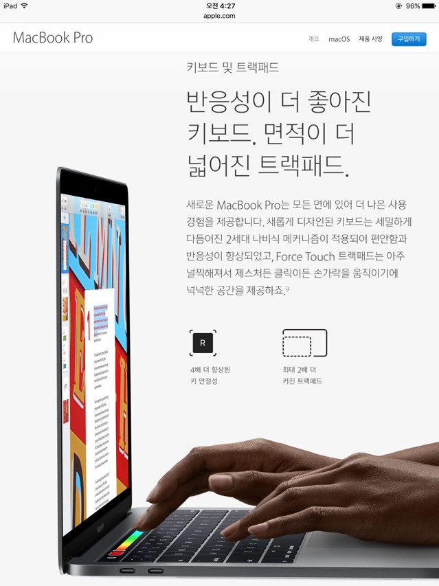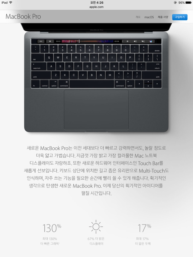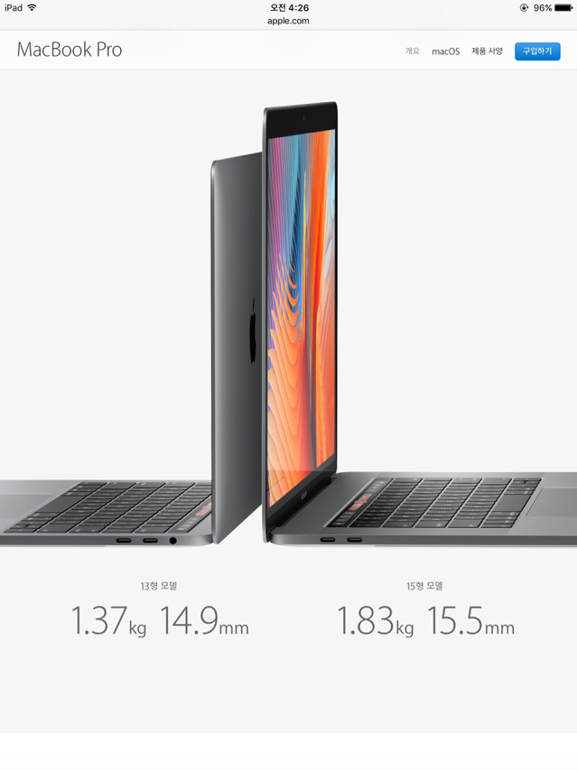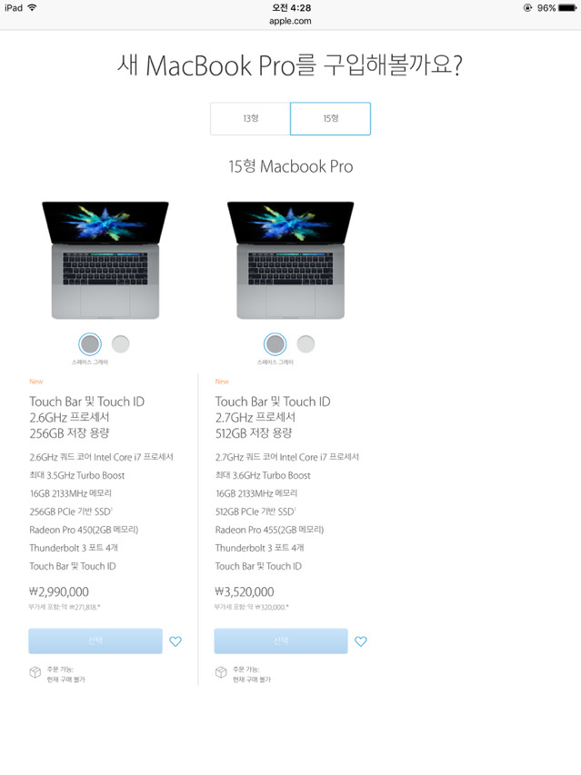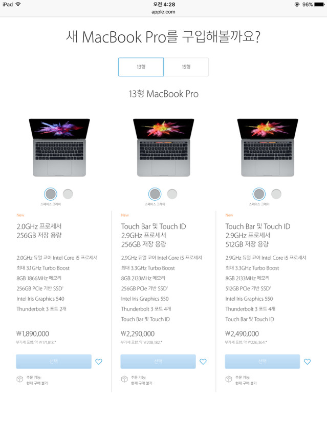 기존의 펑션키를 그대로 갖고있는 모델 두 가지입니다. 물리적인 펑션키는 13인치에서만 구매 가능하며 애플답게 고사양 고성능 제품엔 과감히 삭ㅋ제ㅋ