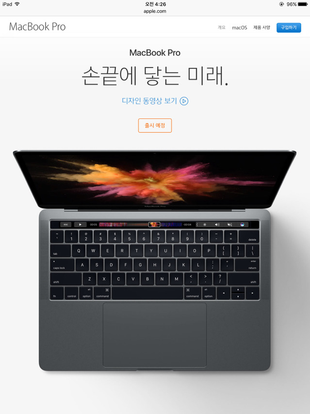 루머대로 물리적인 펑션키가 사라지고 멀티터치바가 생긴 모델과