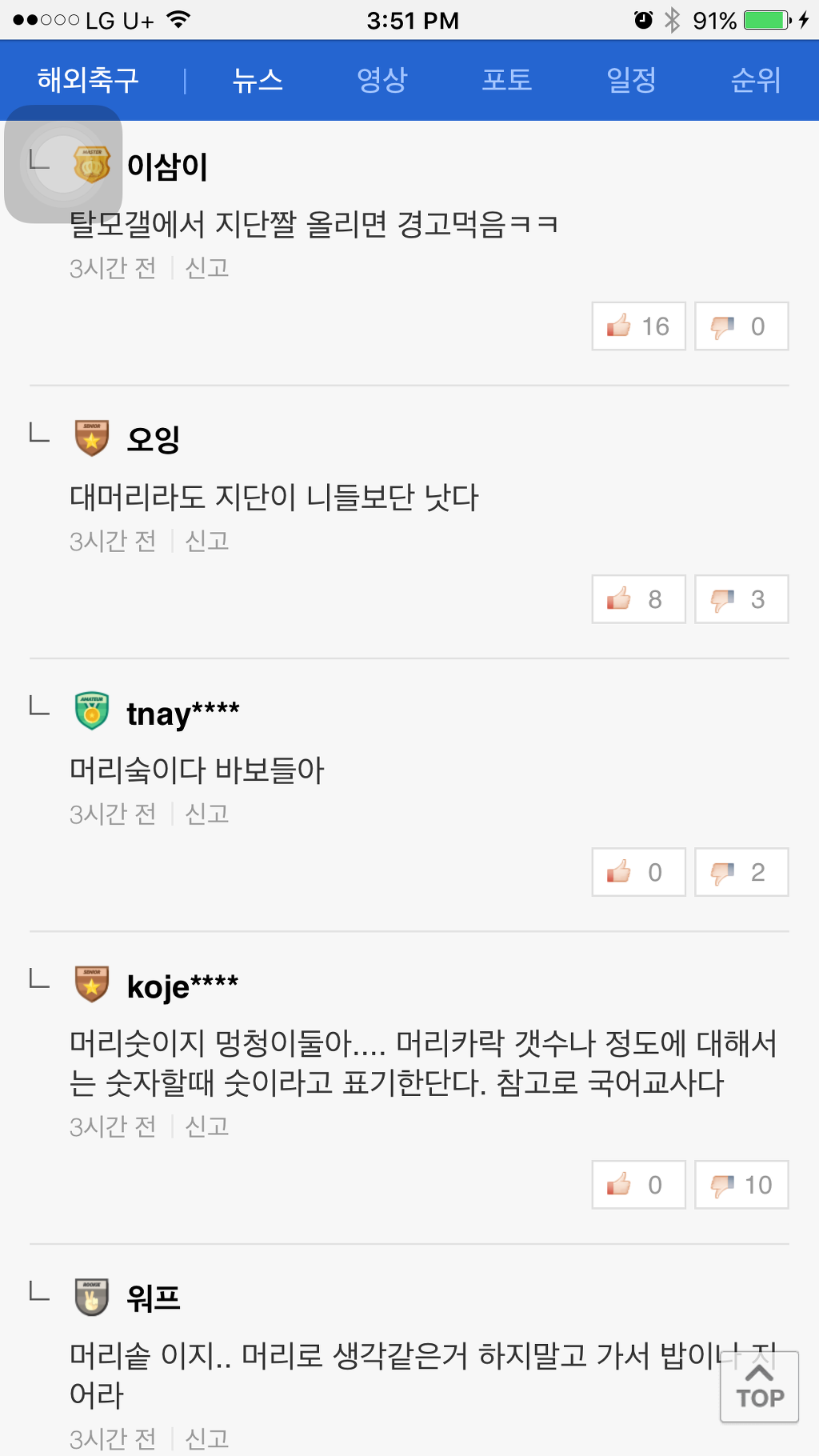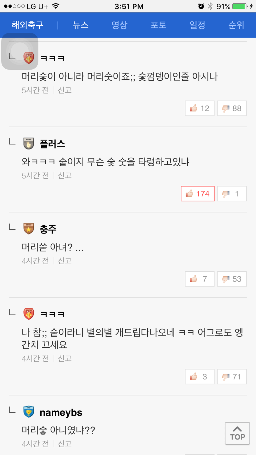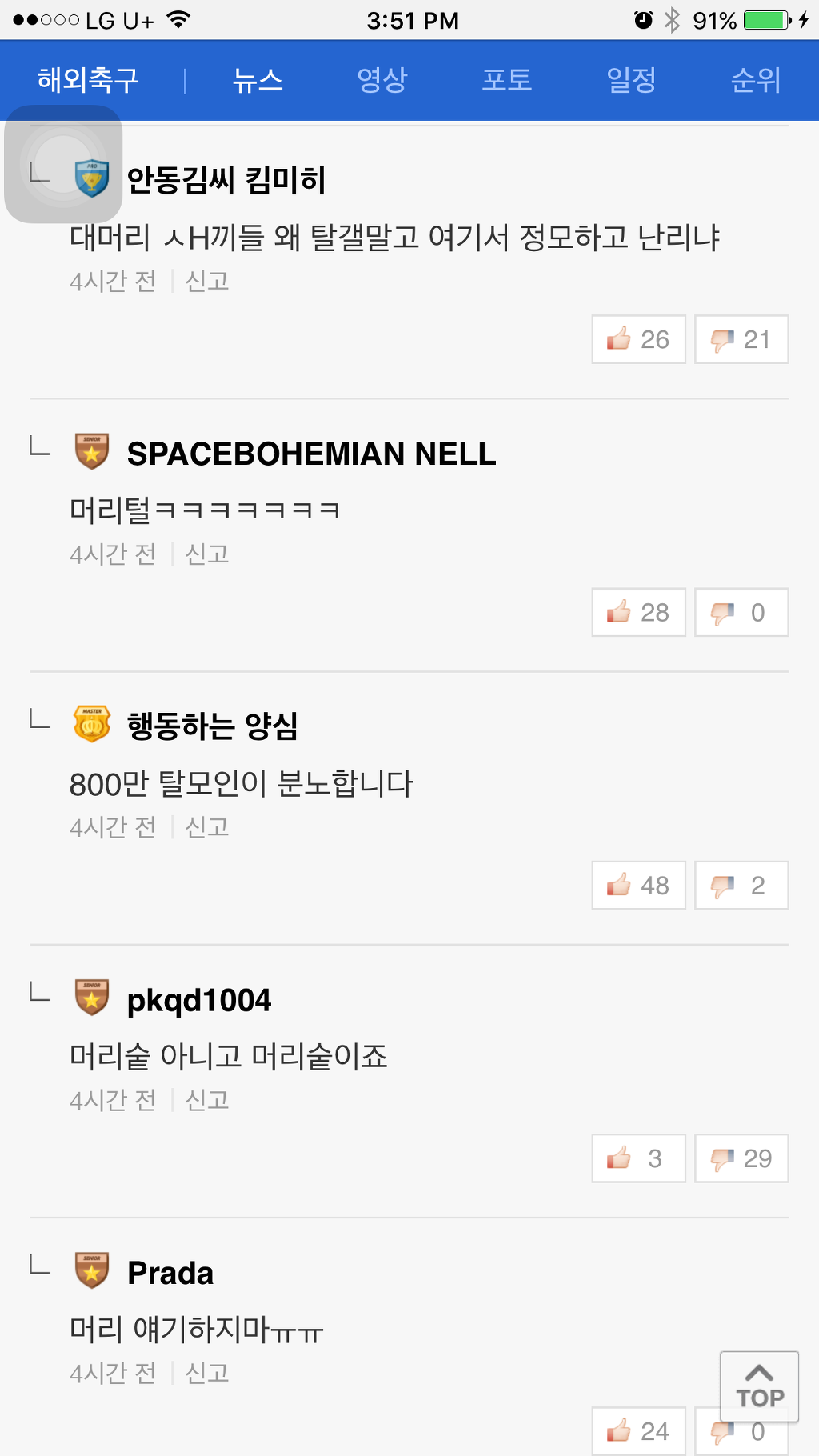 [기사]뜻 밖의 탈모갤 정모 작성자NEDVED|작성시간16.12.01|조회수1,187 목록 댓글 0 글자크기 작게가 글자크기 크게가 네이버 축구기사에 난데없는 머리숱 논란머리숯 머리솥 뭐임ㅋㅋㅋㅋㅋㅋㅋㅋㅋㅋㅋㅋ 다음검색 현재 게시글 추가 기능 열기 북마크 공유하기 신고 센터로 신고 댓글 댓글 0 댓글쓰기 답글쓰기 댓글 리스트