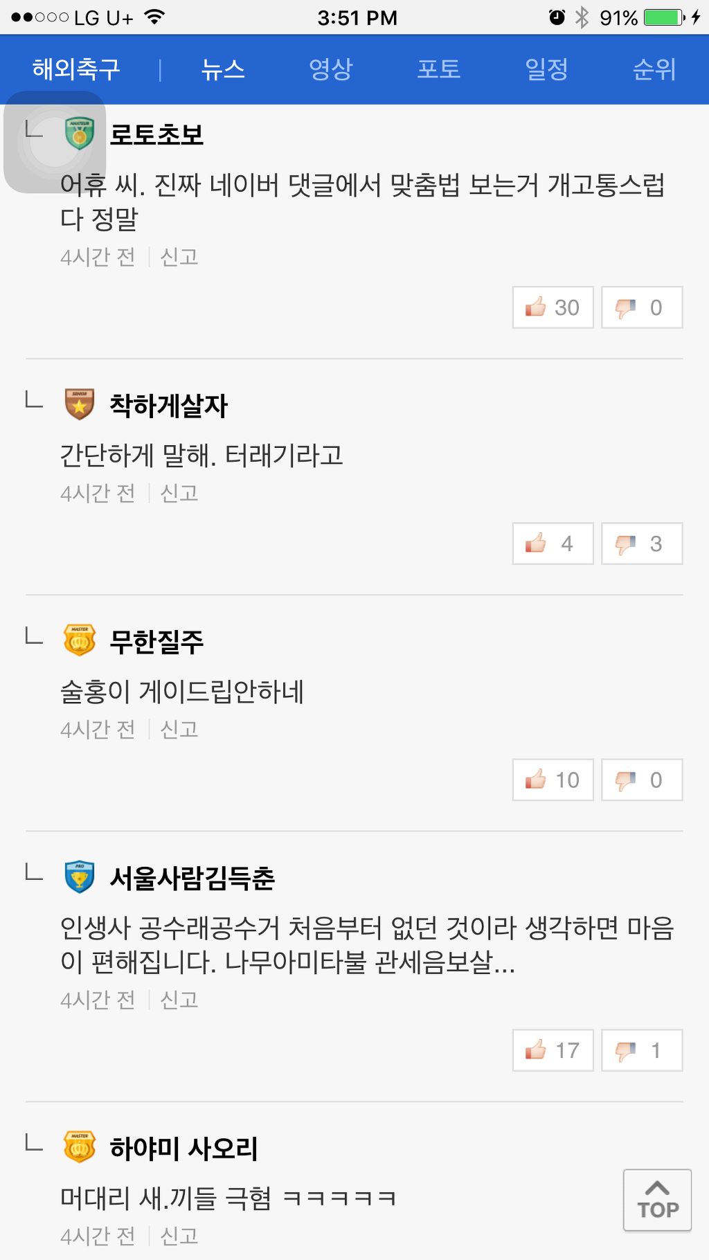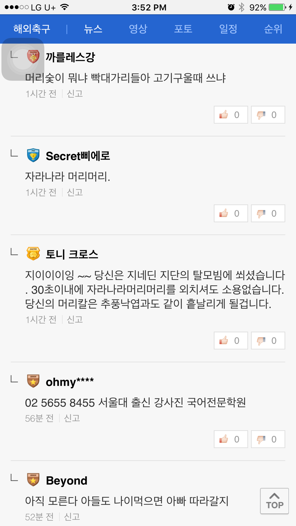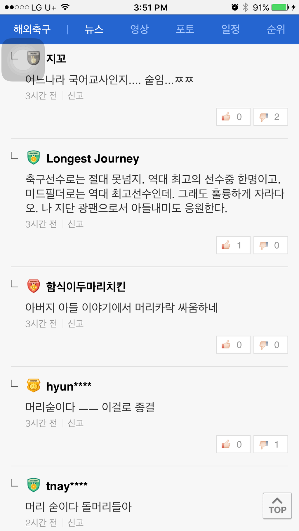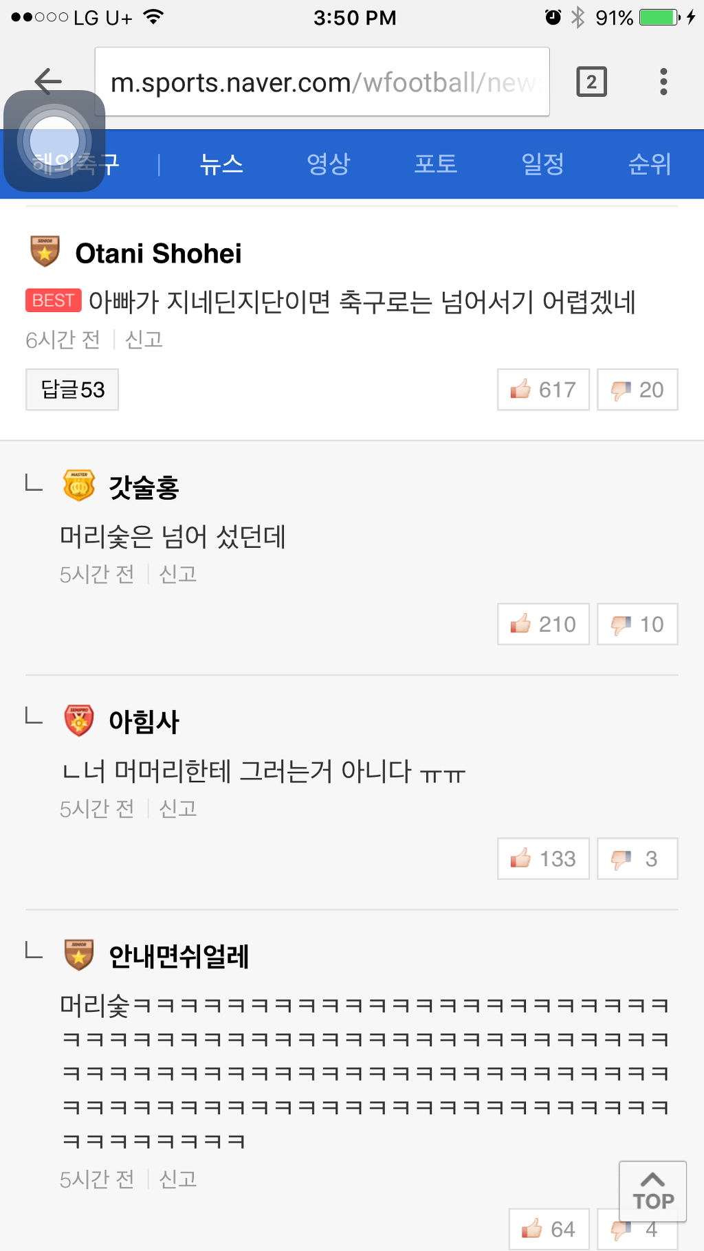 [기사]뜻 밖의 탈모갤 정모 작성자NEDVED|작성시간16.12.01|조회수1,187 목록 댓글 0 글자크기 작게가 글자크기 크게가 네이버 축구기사에 난데없는 머리숱 논란머리숯 머리솥 뭐임ㅋㅋㅋㅋㅋㅋㅋㅋㅋㅋㅋㅋ 다음검색 현재 게시글 추가 기능 열기 북마크 공유하기 신고 센터로 신고 댓글 댓글 0 댓글쓰기 답글쓰기 댓글 리스트