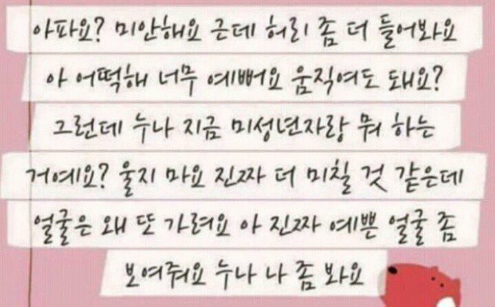 아파요? 미안해요...근데 허리 좀 더 들어봐요...jpg 작성자니네 둘 좀 사겨라|작성시간16.12.08|조회수5,076 목록 댓글 12 글자크기 작게가 글자크기 크게가 . 다음검색 현재 게시글 추가 기능 열기 북마크 공유하기 신고 센터로 신고 댓글 댓글 12 댓글쓰기 답글쓰기 댓글 리스트 작성자Dominic Solanke | 작성시간 16.12.08 이거 노래던데 가사가 줫같음 진짜 작성자닉네임//~ | 작성시간 16.12.08 ??? 작성자14. Henry | 작성시간 16.12.08 누나를 형으로 바꾸면 인정! 작성자긴밤 | 작성시간 16.12.08 미치겠다 속이 안좋아지네 작성자퀵빛짹푼핸♥ | 작성시간 16.12.08 뭐야 이거?? 댓글 전체보기