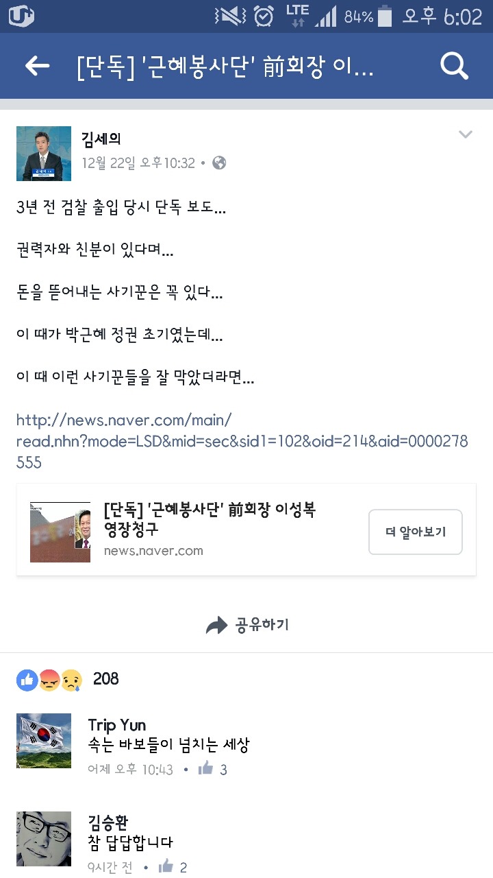 mbc 김세의 (조작)기자 페이스북.jpg 작성자풍백소년|작성시간16.12.23|조회수1,726 목록 댓글 2 글자크기 작게가 글자크기 크게가 자세히 보니 박근혜가 불쌍하다는 뜻인듯? 다음검색 현재 게시글 추가 기능 열기 북마크 공유하기 신고 센터로 신고 댓글 댓글 2 댓글쓰기 답글쓰기 댓글 리스트 작성자Brice | 작성시간 16.12.23 자네 노선이 바뀐겐가 작성자LEWIS | 작성시간 16.12.23 그런 애들이 왜 자꾸 박근혜 근처에 넘치는 지를 생각하는 게 기자다운 생각이지.너? 문재인이나 안철수 근처에 친분과시하며 돌아다니는 사기꾼 본 적 있니? ㅂ ㅅ 댓글 전체보기