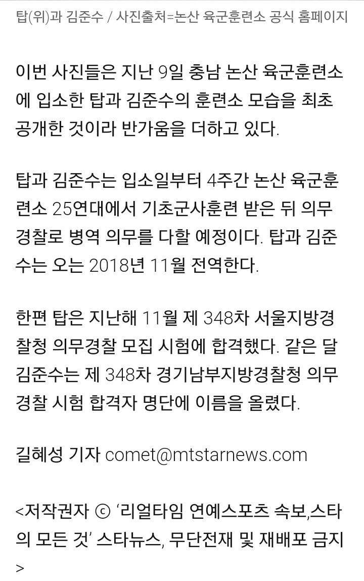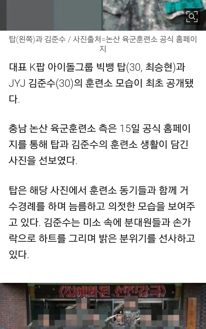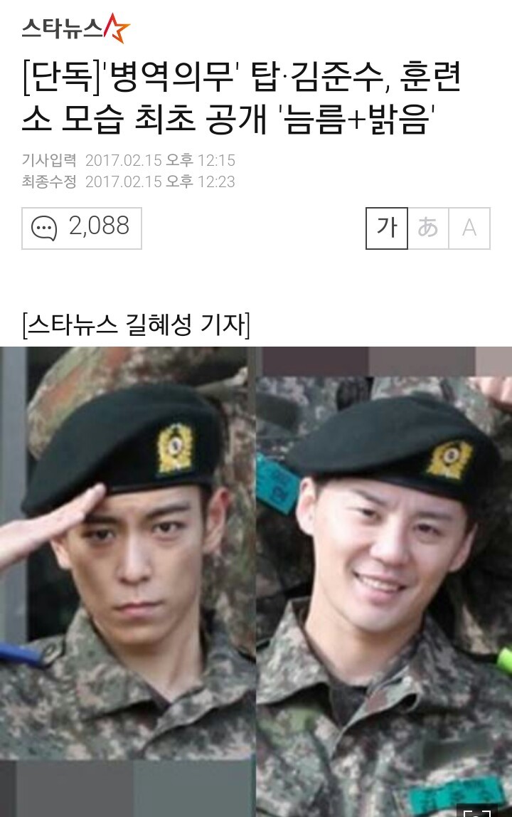 [기사]'병역의무' 탑•김준수, 훈련소 모습 최초 공개 '늠름+`밝음' 작성자등심스테이크|작성시간17.02.15|조회수2,370 목록 댓글 8 글자크기 작게가 글자크기 크게가 . 다음검색 현재 게시글 추가 기능 열기 북마크 공유하기 신고 센터로 신고 댓글 댓글 8 댓글쓰기 답글쓰기 댓글 리스트 작성자님강등당해요조심 | 작성시간 17.02.15 탑 뭔가 장난끼가 있음 ㅋㅋㅋㅋㅋㅋㅋㅋㅋㅋㅋ 작성자김총무 | 작성시간 17.02.15 저기 한달해도 정 많이 들던데 동기 부럽다 작성자파도 | 작성시간 17.02.15 탑 완전 잘생 작성자hello,today | 작성시간 17.02.15 밝음(?) 작성자GODSTER (갓스터) | 작성시간 17.02.16 탑이랑 전우조인애들 부럽 자대배치 받고나서는 안부럽 댓글 전체보기