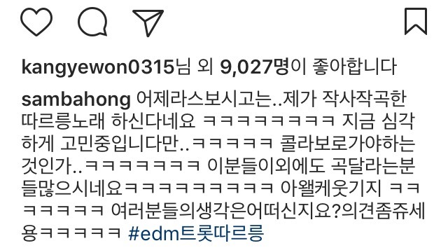 갓데리가 작곡한 '따르릉' 달라고 조르는 허경환, 김영철 작성자데얀골|작성시간17.04.06|조회수1,384 목록 댓글 1 글자크기 작게가 글자크기 크게가 . 다음검색 현재 게시글 추가 기능 열기 북마크 공유하기 신고 센터로 신고 댓글 댓글 1 댓글쓰기 답글쓰기 댓글 리스트 작성자차세정 | 작성시간 17.04.06 허경환이 하길 댓글 전체보기