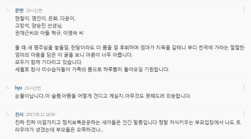[기사][연합뉴스] 문재인, 연합뉴스 기사에 댓글 작성자안녕하시려므니까|작성시간17.05.13|조회수1,872 목록 댓글 1 글자크기 작게가 글자크기 크게가 세월호 文대통령, '세월호' 기사에 댓글…12일 오후 연합뉴스 속보기사에 달린 댓글에 답글 올려 : (서울=연합뉴스) 김승욱 기자 = 문재인 대통령이 세월호와 관련한 기사에 댓글을 달았던 사실이 13일 뒤늦게 알려졌다.www.yonhapnews.co.kr 다음검색 현재 게시글 추가 기능 열기 북마크 공유하기 신고 센터로 신고 댓글 댓글 1 댓글쓰기 답글쓰기 댓글 리스트 작성자Cristiano Ronaldo. | 작성시간 17.05.13 박정권 부역자 놈들이 지들기사라고 자랑하는거보소 ㅋㅋ 댓글 전체보기